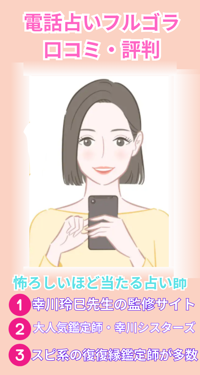 もし今、恋愛や復縁でモヤモヤしているなら、電話占いフルゴラの口コミをチェックして、相性の良さそうな先生に相談してみてはいかがでしょうか?