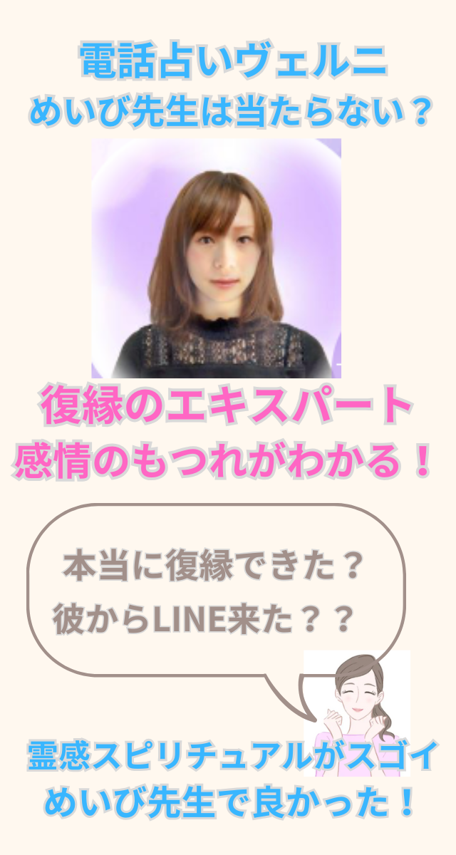 電話占いヴェルニのめいび先生は当たる?当たらない?良い口コミ・悪い口コミを徹底調査